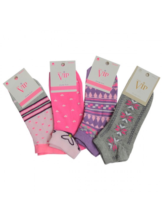 Vip Likrali Desenli 4 Adet Bayan Patik Çorap