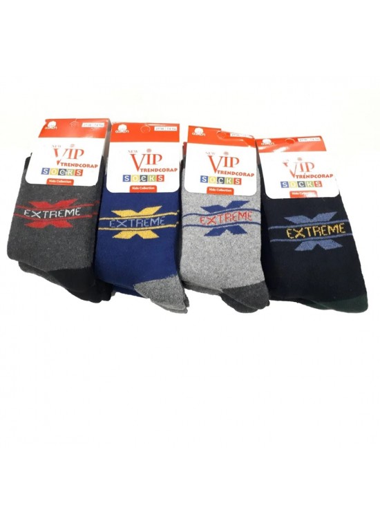 Vip pamuklu, kalın, kışlık, havlu erkek çocuk soket çorap. % 80 Pamuk, %18 Polyester ve %2 Elastan. Desenler anlık stok durumuna göre değişiklik gösterebilir.