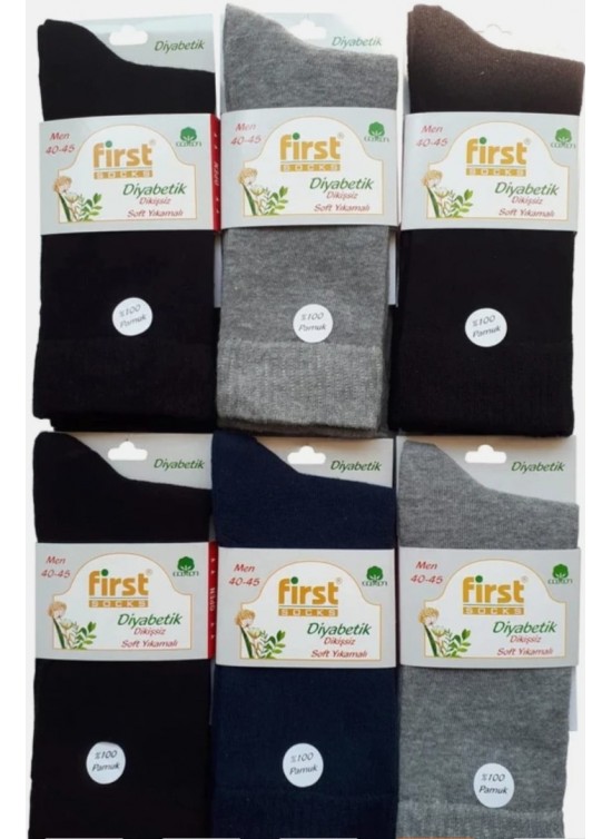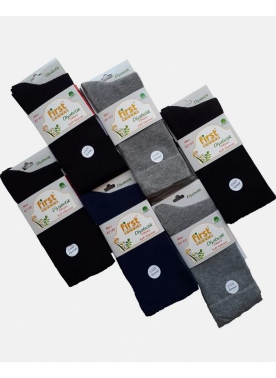 FİRST ERKEK PAMUKLU DİYABETİK ŞEKER ÇORABI 6 ÇİFT - Karışık Renklerde
