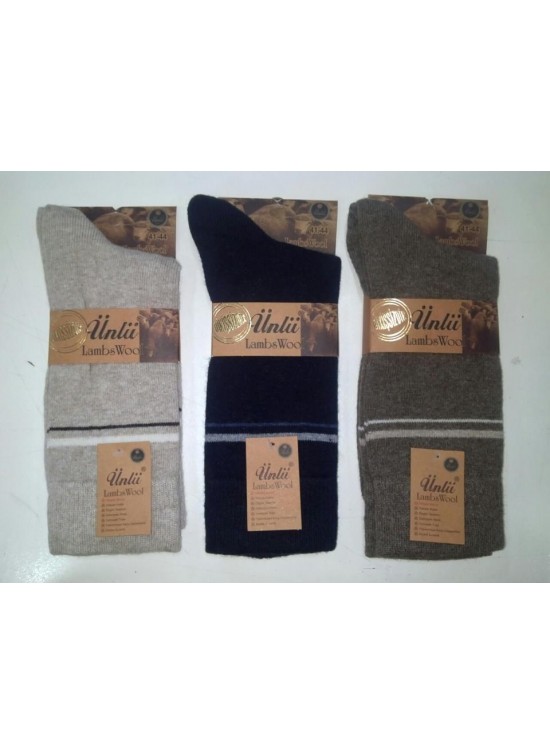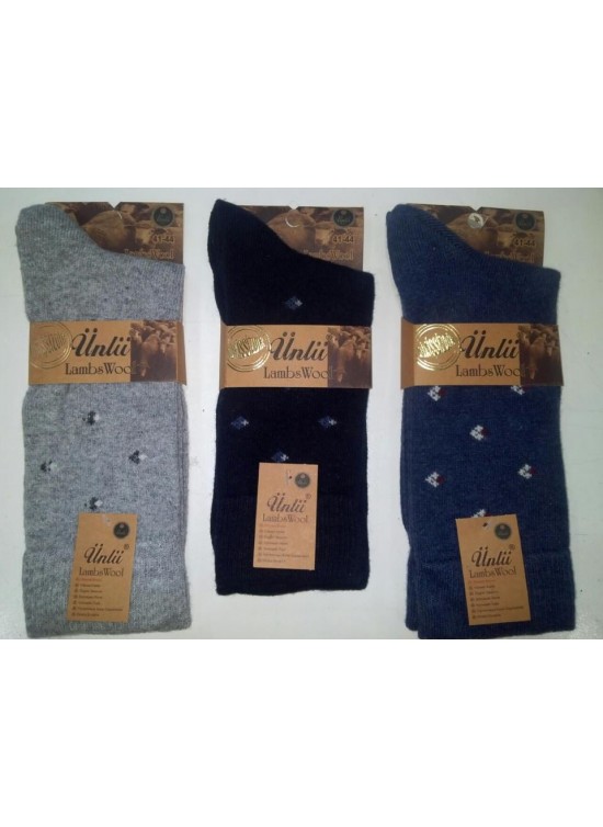 Ünlü LambsWool Yün 3 Adet Dikişsiz Erkek Çorabı