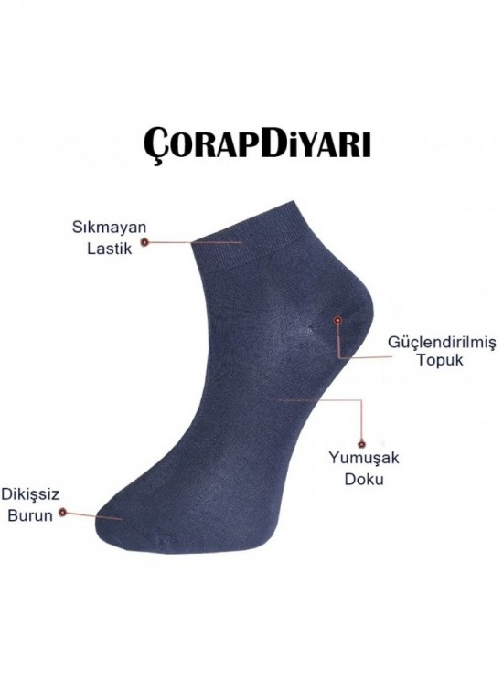 Çorapdiyari Premium 8'li Dikişsiz Bambu Erkek Spor Bilek Patik Çorap - Siyah - Lacivert