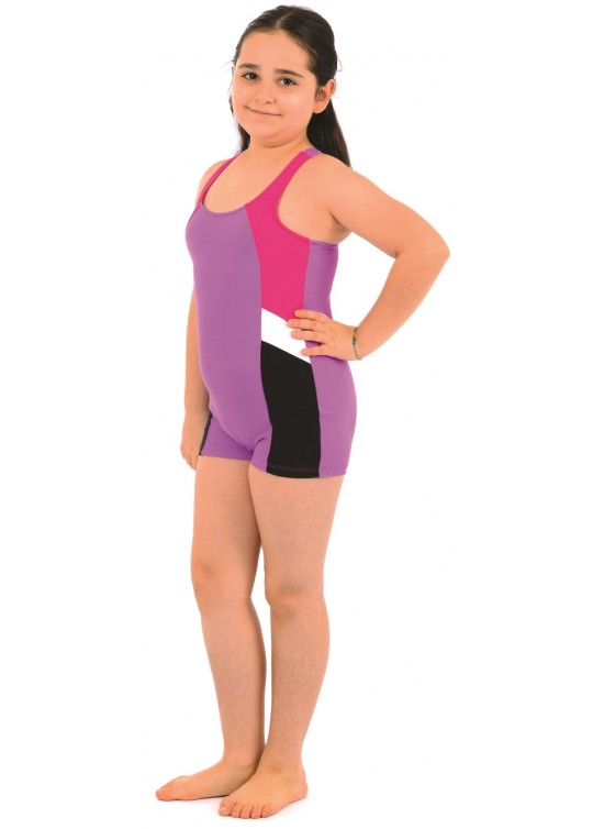 Likralı Kız Çocuk Şortlu Yüzücü Mayo